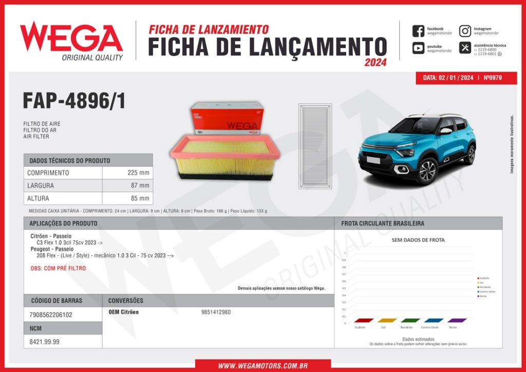 A Wega, líder na fabricação de filtros automotivos para o mercado de reposição, ampliou seu portifólio com exclusivo filtro de ar do motor, com aplicação para veículos Peugeot e Citroen.