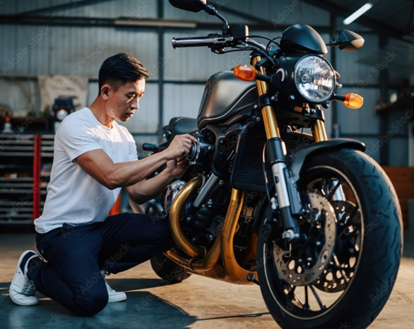 Manutenção preventiva em motocicleta: revisão de filtros e velas garante desempenho, economia e segurança no motor.